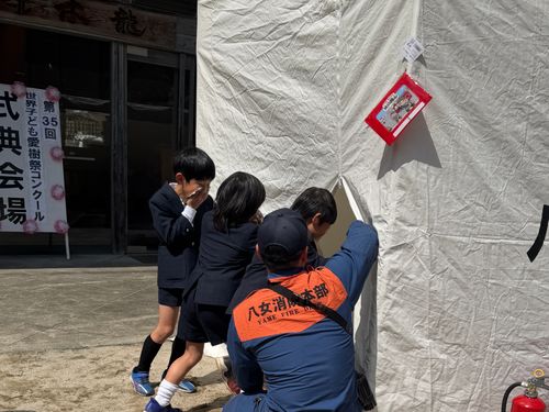 3月3月21日(土)、八女市立矢部清流学園にて開催された「第35回世界子ども愛樹祭コンクール授賞式」にあわせ、防火防災フェアを実施しました。